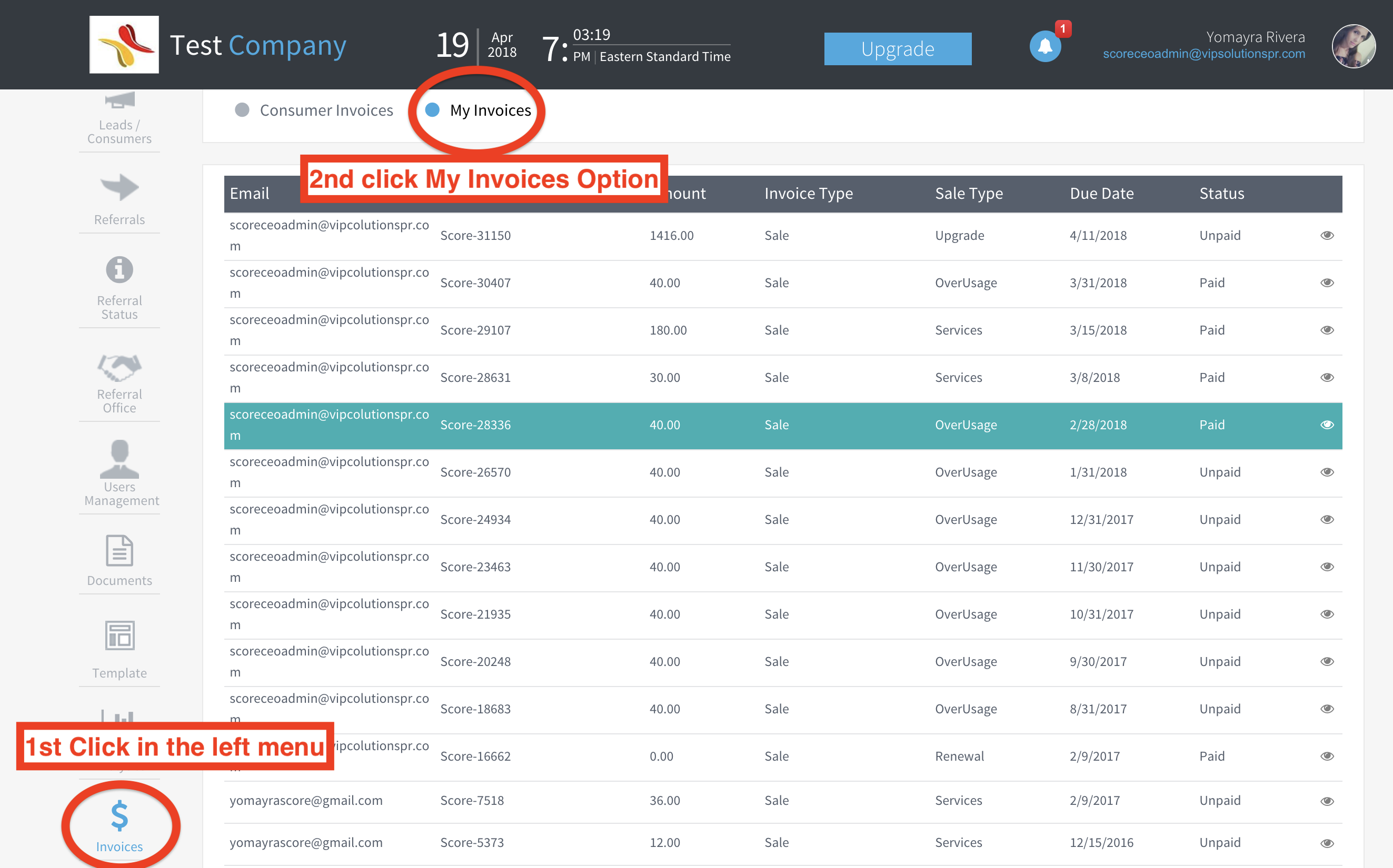 Learn today how to find your invoices you have paid for your ScoreCEO Services.