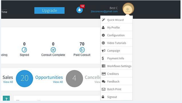 Step 2: Access the Configuration Bubble: After logging in successfully, locate the configuration bubble, located in the top-right corner of the ScoreCEO.com interface. Click on it to reveal a drop-down menu with various options.