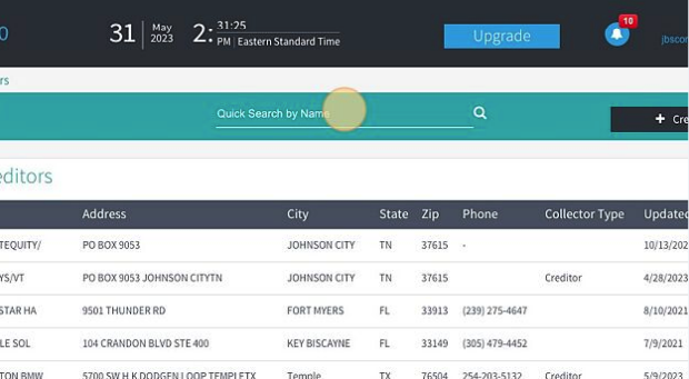 Step 4: Locate the Creditor: In the creditor management section, you will find either a search bar or a list of creditors displayed on the page. If there is a search bar, enter the name or relevant details of the creditor you wish to edit and click the search button. Alternatively, if the creditors are listed, scroll through the page to find the specific creditor you want to modify.