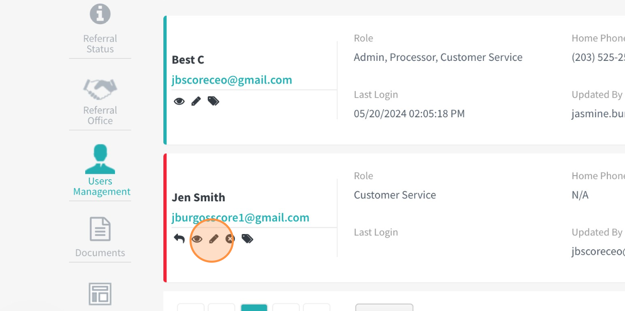 Once you have found the user, click on the pencil icon under their name to enter Edit mode. This action will open the user's profile for modifications.