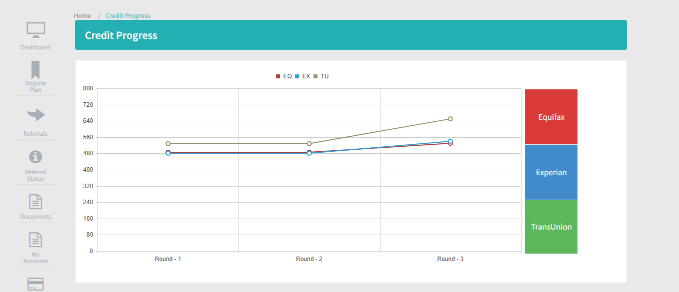 Once logged in, direct your attention to the main dashboard. Find the "Credit Progress" tab located at the bottom left corner of the screen. This section is specifically designed to give you a comprehensive view of your ongoing credit repair journey.